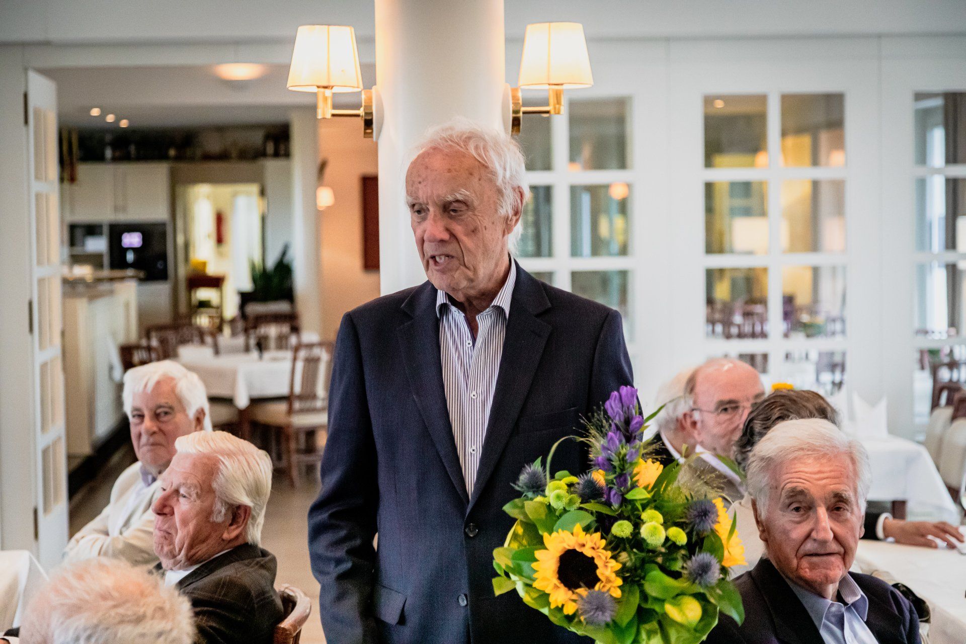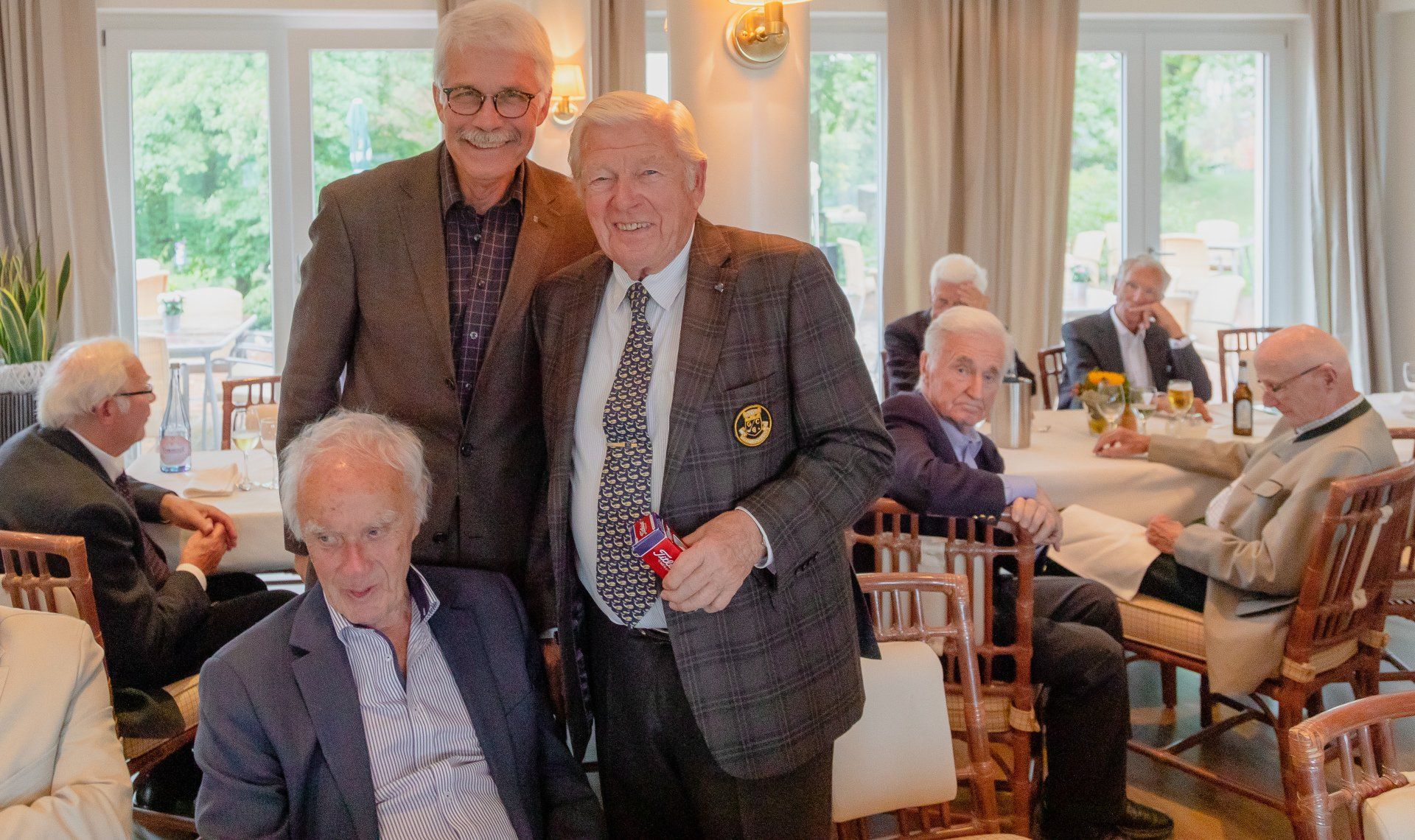 Und feiern und Frohsinn verbreiten, das können die „Alten“. Nicht zuletzt, weil die Gastgeber sich als großzügig erwiesen. Speisen - Lauchcremesuppe, Dorade und Zander, heiße Kirschen mit Eis - und Trank nach Wahl waren in der Einladung inbegriffen. Clubpräsidentin Petra Grube, die urlaubsbedingt nicht dabei sein konnte, gab ebenfalls Einen aus - Pflaumenkuchen zum Kaffee.