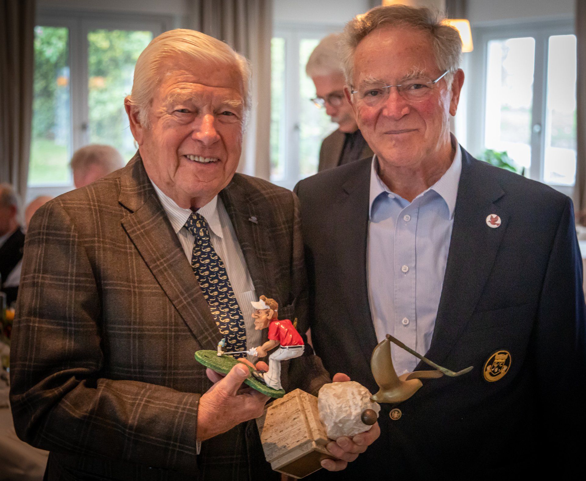 Auf besondere Einladung des Preisstifters ging diesmal auch Ehrenpräsident Manfred Tiegelkamp - bei weitem noch nicht 80 - außer Konkurrenz mit auf die Runde. Und Gert Scholven ließ es sich wieder nicht nehmen, als Caddy dabei zu sein. Trotz angeknackster, schmerzhafter Rippe musste er doch bei vielen Scherzen während und nach der Runde mitlachen.