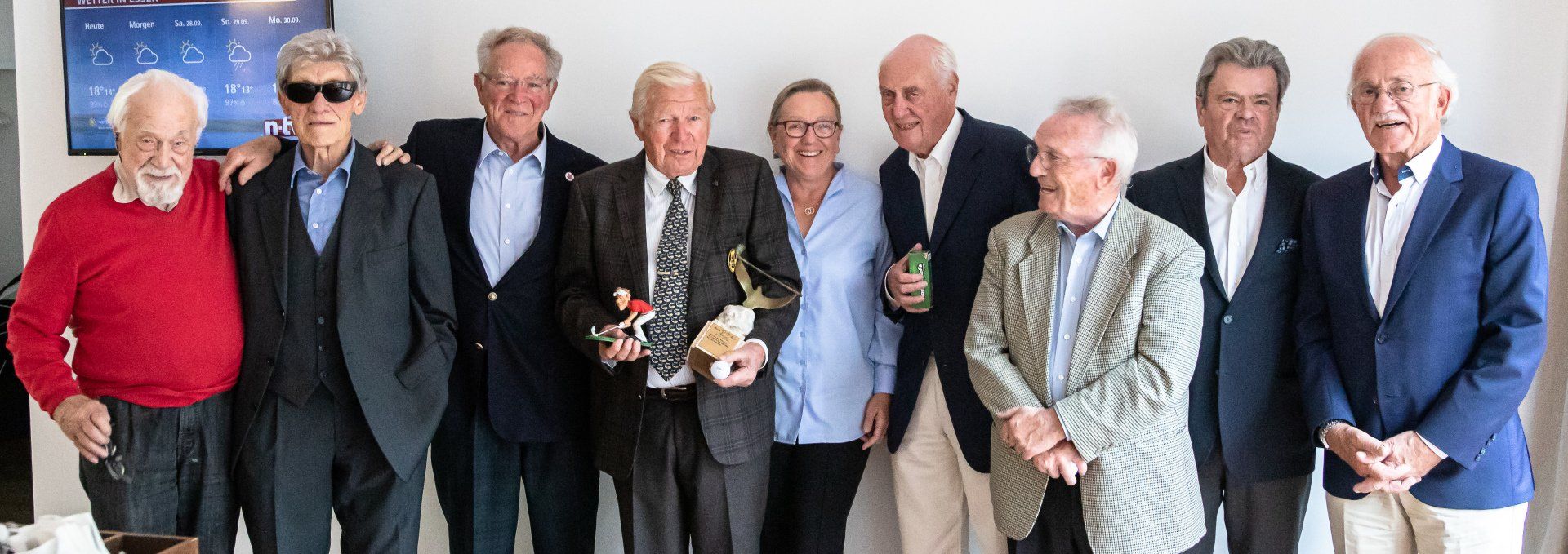 „Als meine Frau Marita und ich das Turnier 2016 initiiert hatten, haben uns alle im Club, auch die DonnerstagsSenioren, für verrückt erklärt. Das wäre doch eine Totgeburt,“ erklärte Horst Giesen bei der Siegerehrung. Doch es war von Anfang an ein Erfolgsevent mit immer mehr als 20 Teilnehmern und die müssen mindestens 80 Jahre alt sein. Jedes Mal teilgenommen hat Karl-Heinz Steven, der dieses Jahr 96 Jahre alt wird, und auch der noch zwei Jahre ältere „Goethe“ Jochen Schmidt war wie stets bei der Ehrung der Sieger dabei.
