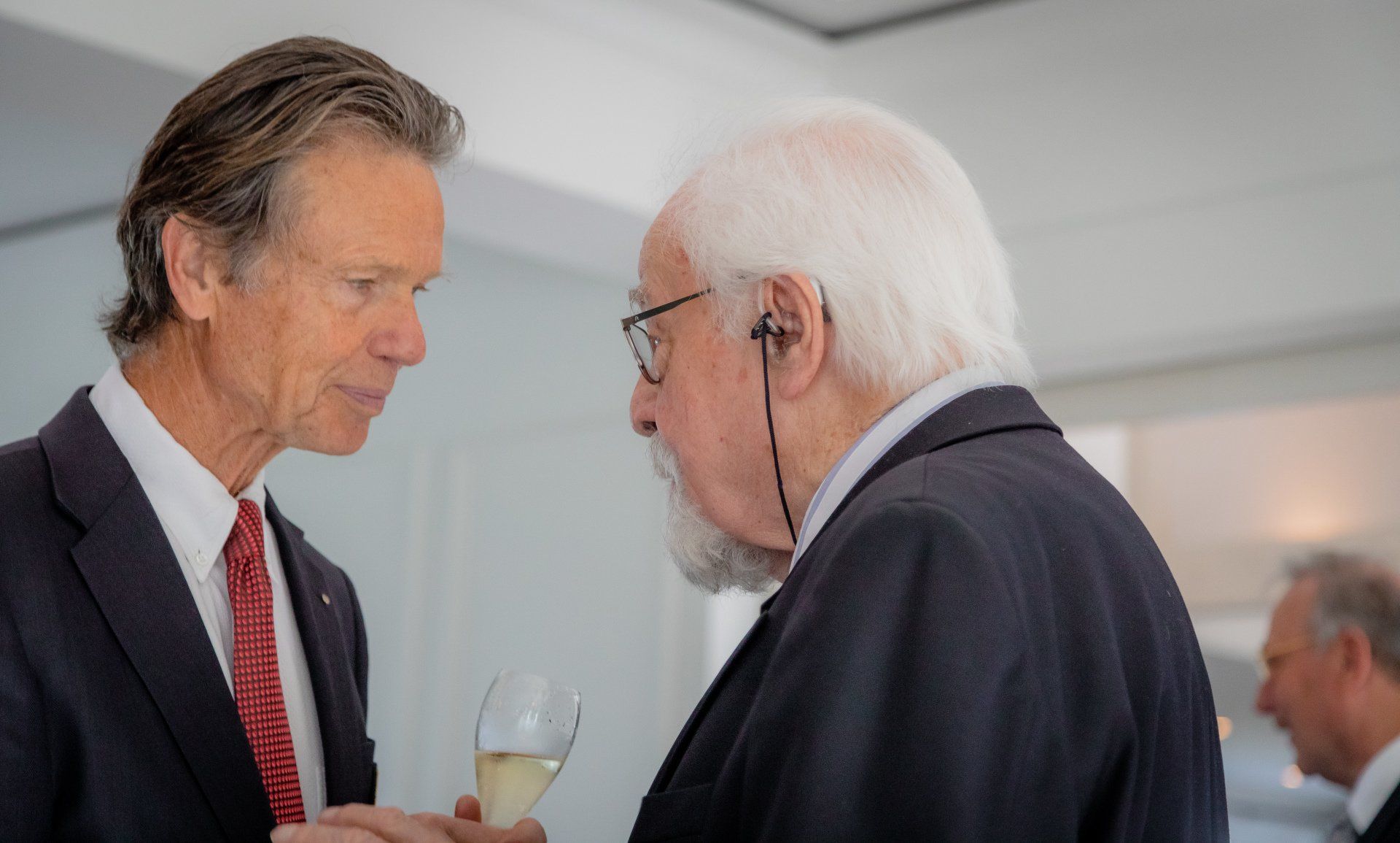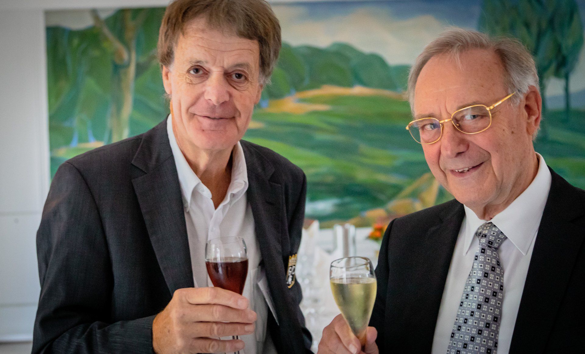 Launig bereiteten die Jubilare ihre Vita aus: Während Werner Korte den Schwerpunkt auf seinen beruflichen Erfolg bei der Nationalbank „immer um den Kirchturm Ruhrgebiet“ schilderte, sah Wolfgang Müller über den Tellerrand seines Jobschwerpunkts Köln hinaus und schwärmte von Reisen in die ganze Welt und im Winter nach Florida - belegt durch Fotos aus sieben Jahrzehnten.