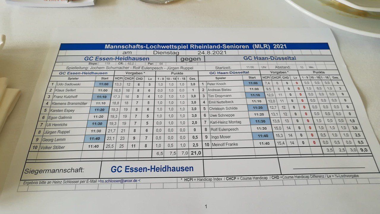 Mannschaftslochwettspiel Senioren Rheinland (MLR): Heidhausen seit langem wieder im Endspiel!