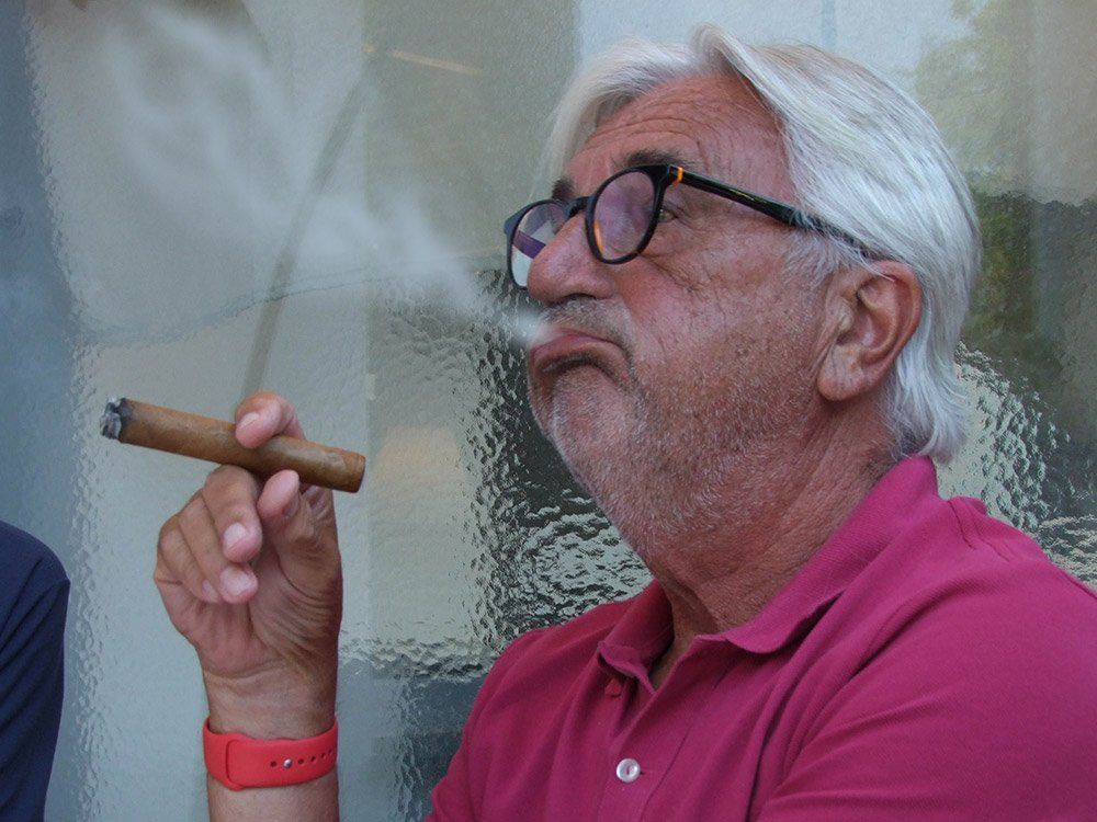 Wir dankten dem Organisator Jörg mit 2 Flaschen herrlichem Grauburgunder von Gut Pfaffmann sowie 2 Holz-Päckchen Pfalz Zigarillos.