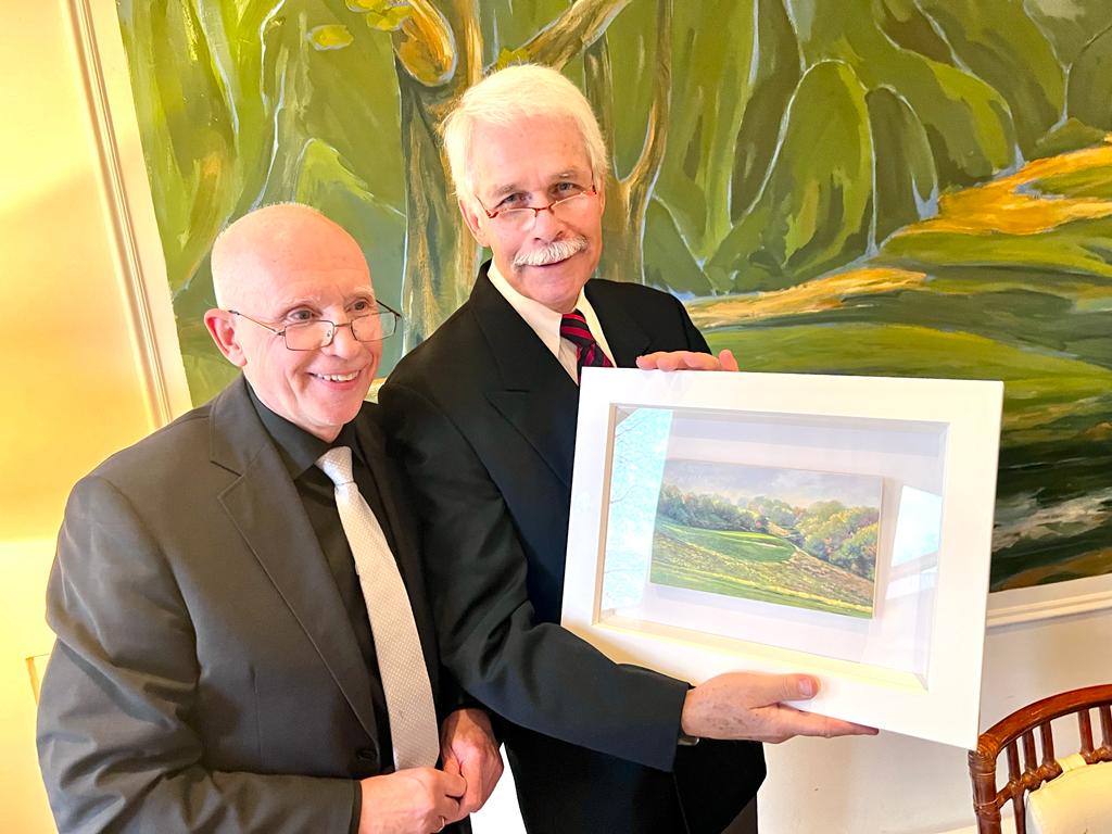 Als Abschiedsgeschenk aller Senioren an Hans und Jörg übergab Viktor Cleve im Namen der gesamten Senioren je ein von ihm gemaltes Originalgemälde von Loch sechs auf dem Platz Schauinsland.