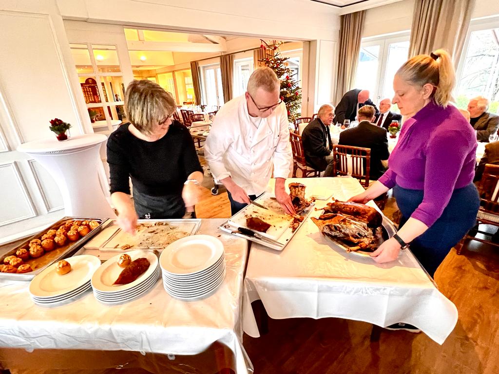 Am 8.12.2022 fand das diesjährige Abschluss-Gänseessen im Rahmen einer Mitgliederversammlung der DonnerstagsSenioren statt. Das zentrale Thema war die Übergabe des Staffelstabs nach 8 Jahren Leitung von Hans Kleckel und Jörg Rüttinger an Klemens Bransmöller (Sprecher) und Herbert Höfler (Kassenwart).