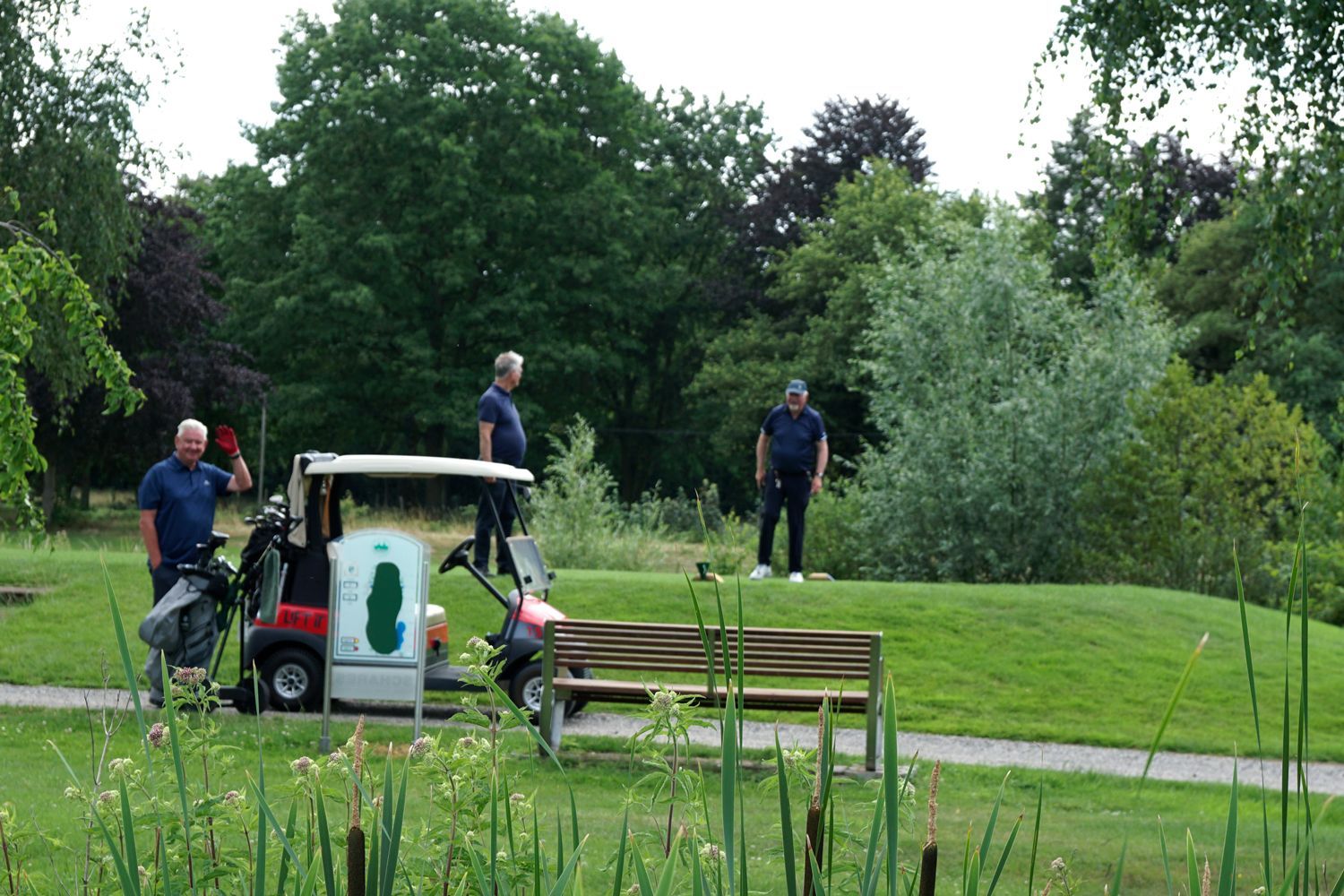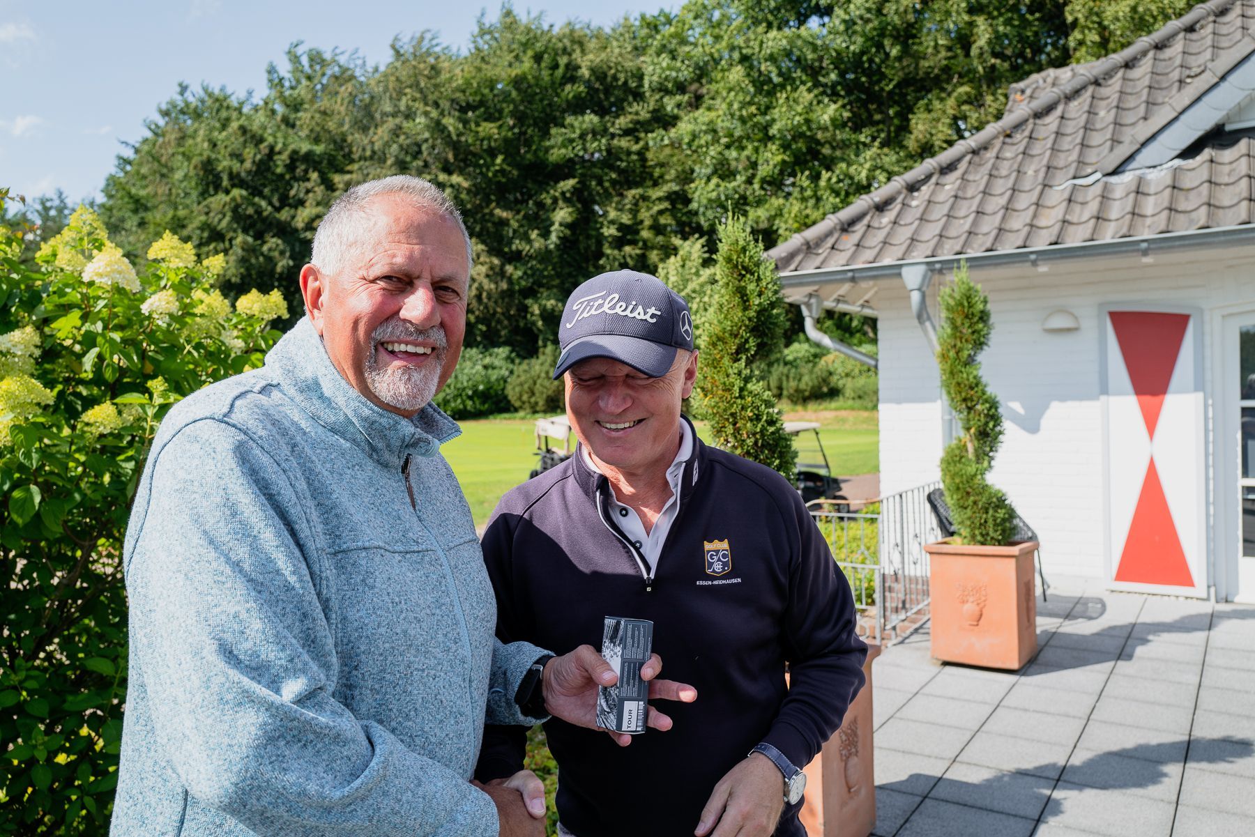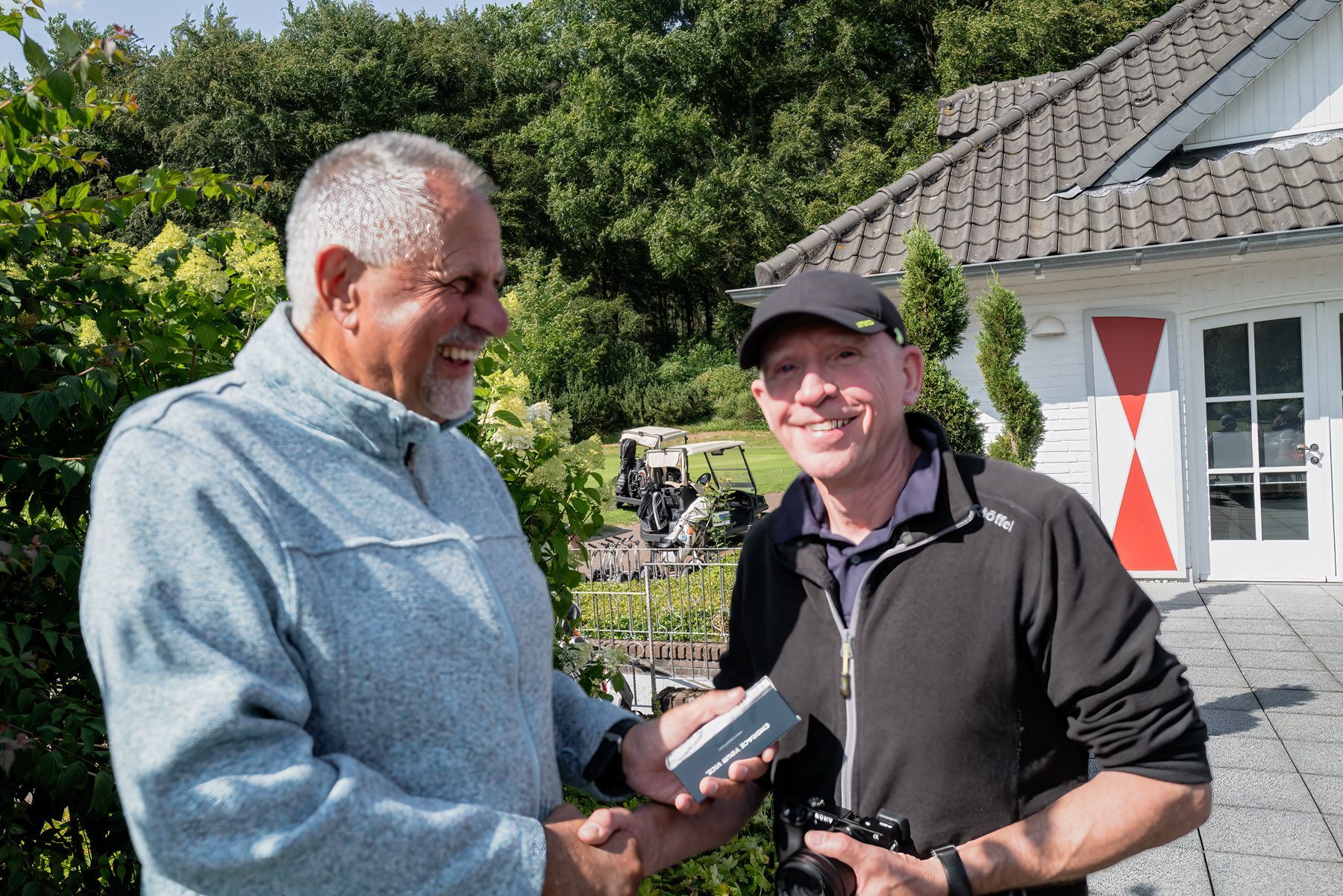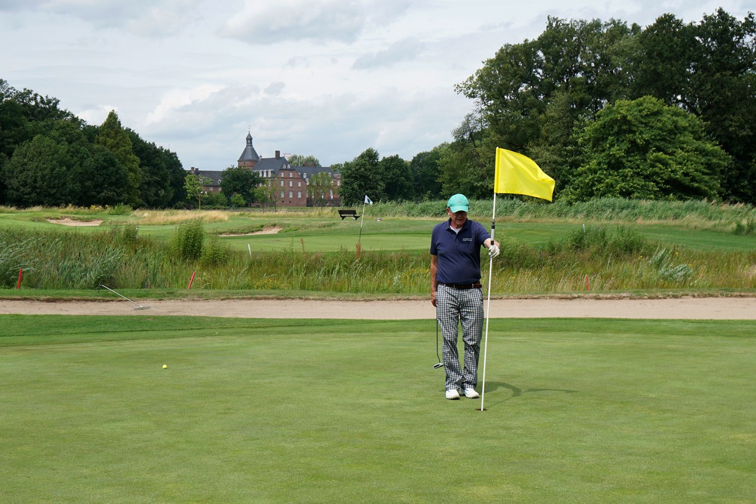 Stimmung also ausgezeichnet, Ergebnisse auf den beiden flachen Plätzen mit höchstens fünf Höhenmetern gut: Bei idealem Golfwetter in Wasserschloß Anholt (Par 72, Slope 128, CR 69,4) holte sich Reinhold Bagus das 1. Brutto mit 21 Stablefordpunkten. Mit dem Handicap von nun 10,9 ist er seinem großen Traum, mal einstellig zu werden, recht nahegekommen. Egon Galinnis rangierte nach Stechen als Zweiter mit 17 vor Klemens Bransmöller. Volker Stöber dominierte das Netto mit 37 Punkten vor Klemens Bransmöller (36) und Viktor Cleve (32).