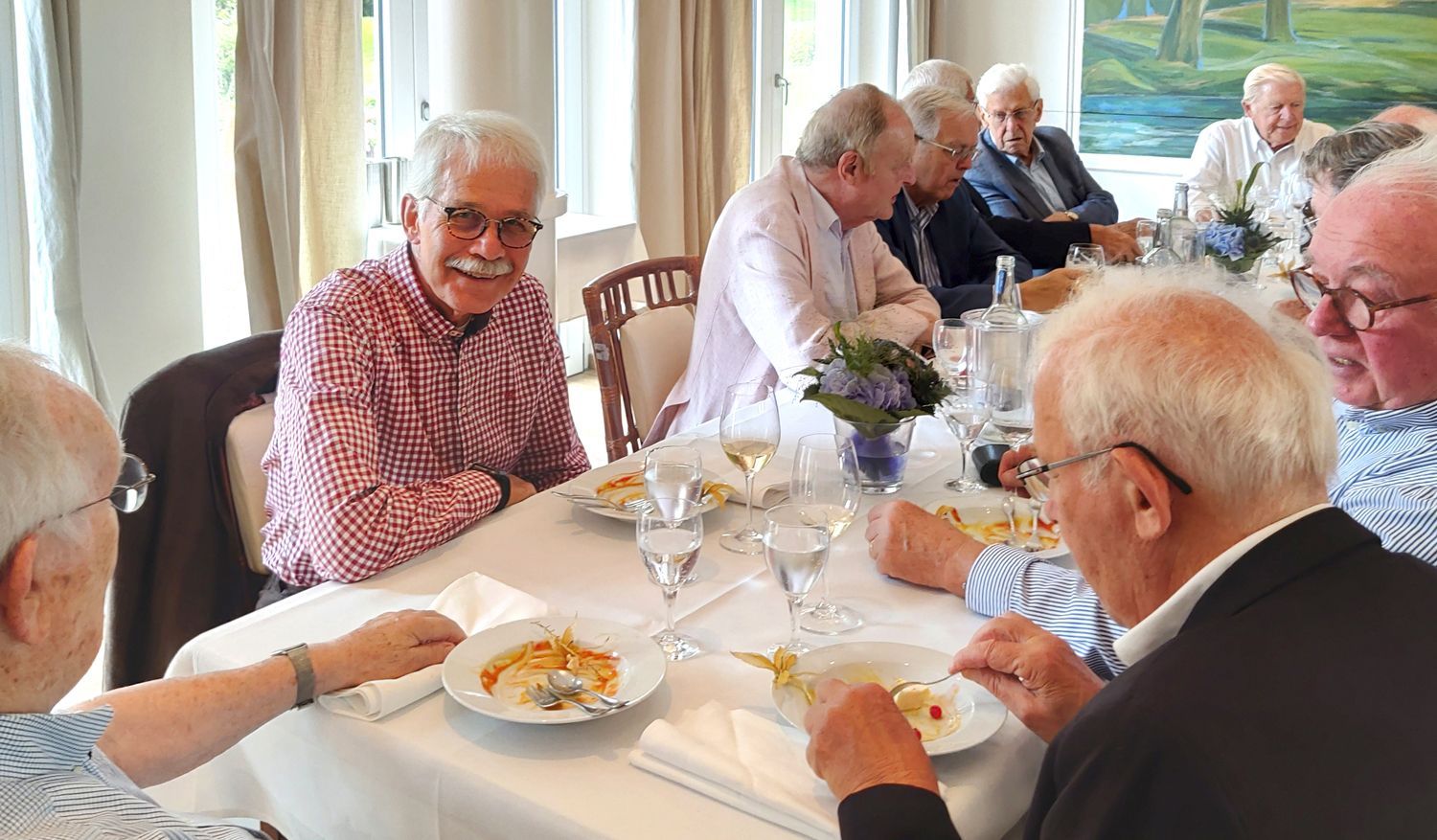 Unser Seniorensprecher Klemens bedankte sich bei den Gastgebern für deren Einladung und versprach den „Dreien“ alles dranzusetzen, ihren Wunsch bis zum 1.9.23 durchzufeiern, zu erfüllen.