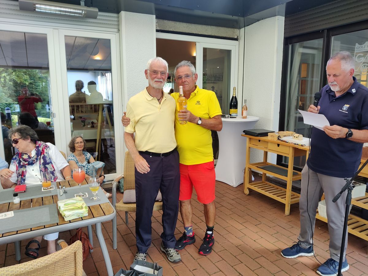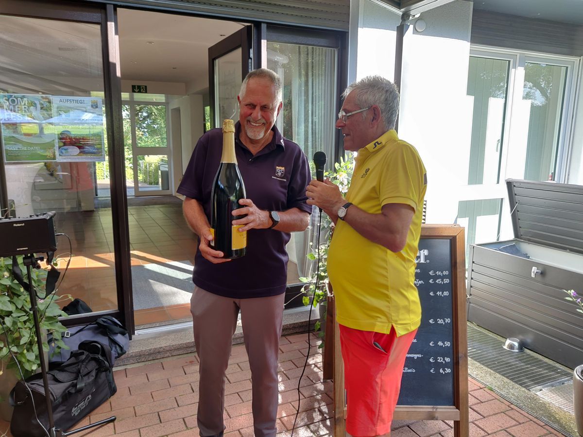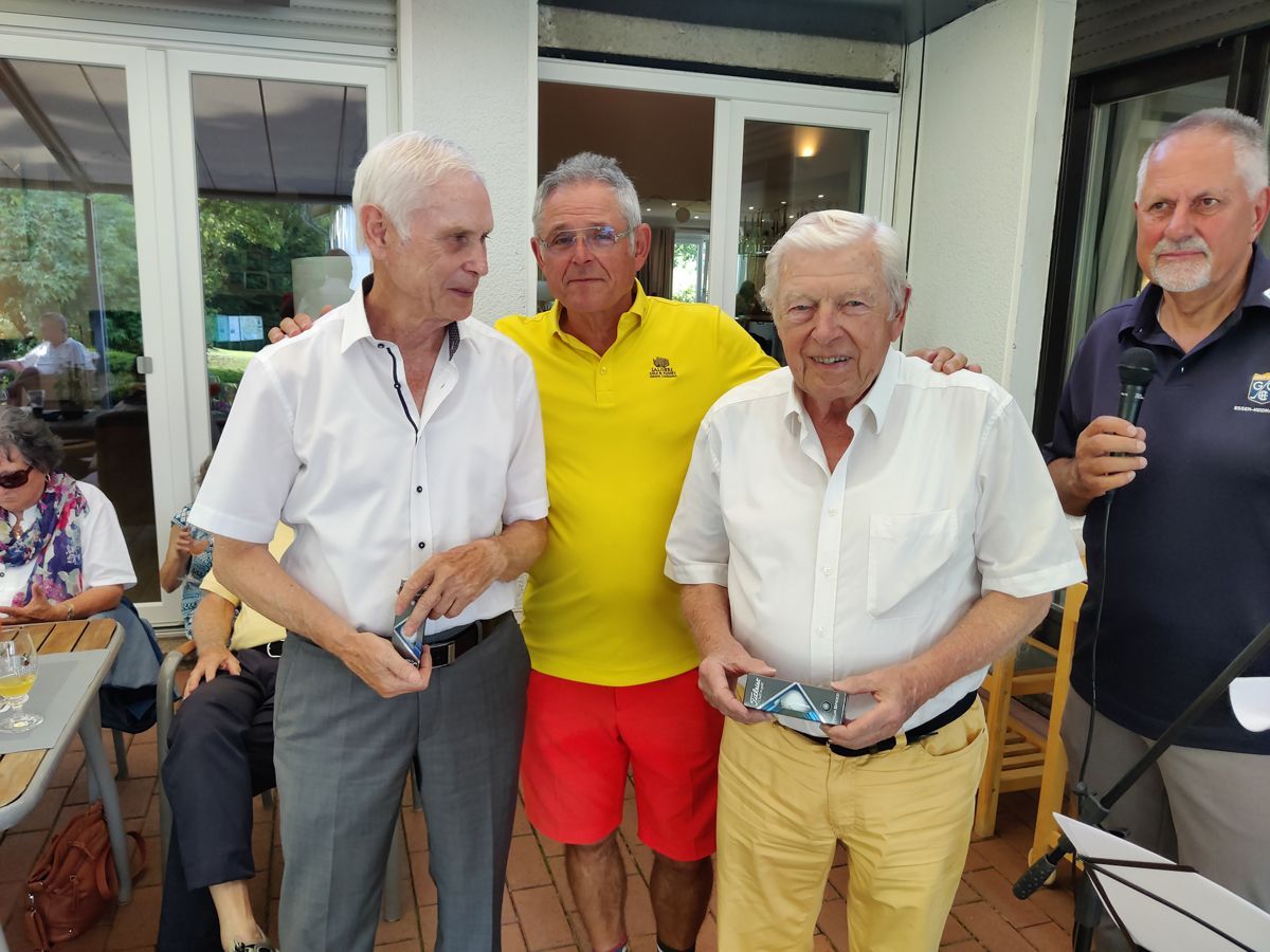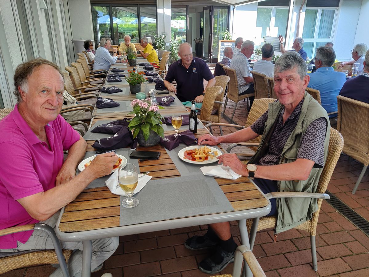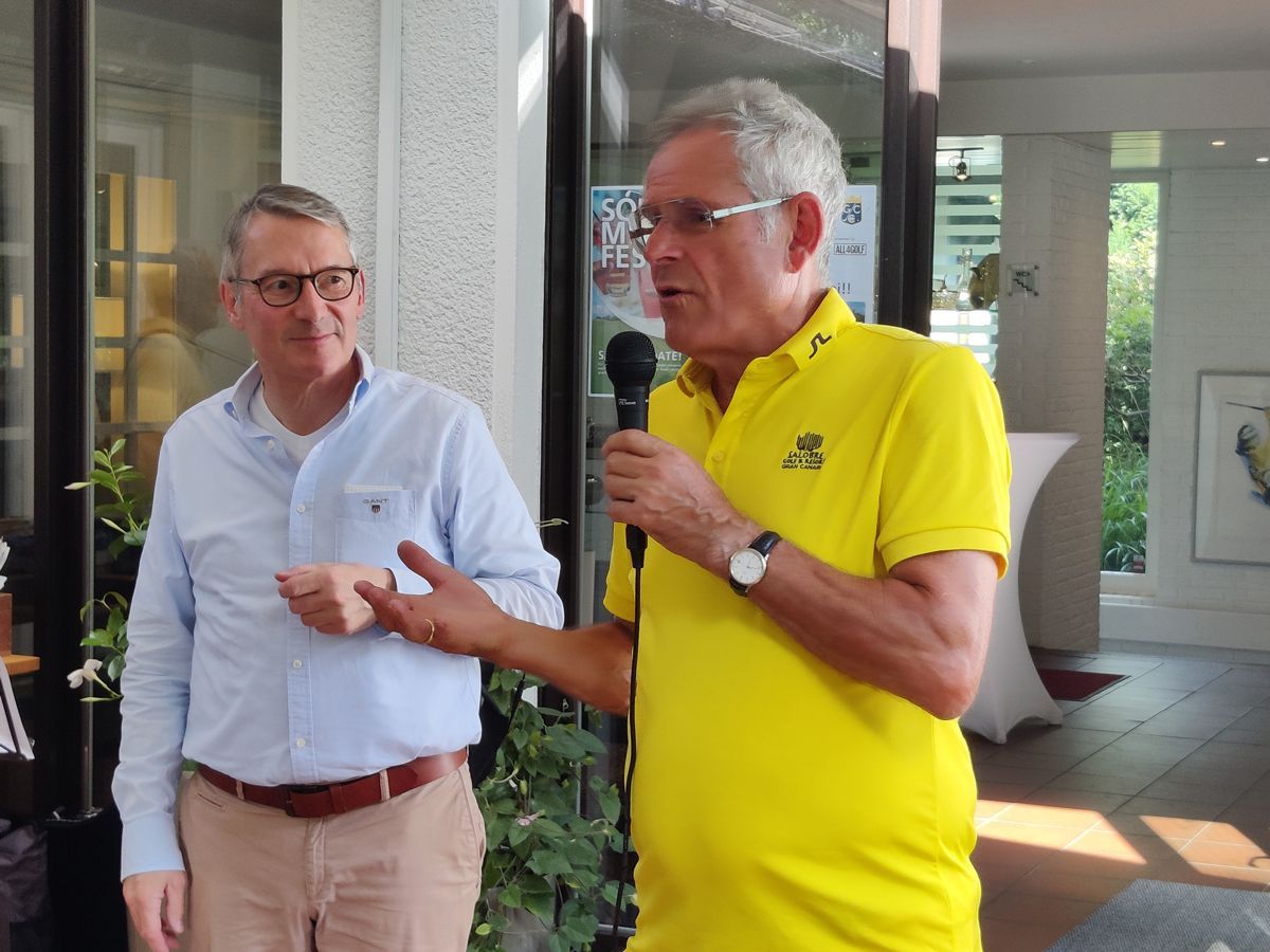 Aus diesem Anlass hatte Reinhold seine DonnerstagsSenioren am ersten Turniertag nach der Runde zum gemütlichen Beisammensein eingeladen. Unser Vereinspräsident Volker Stöber und der Sprecher der DonnerstagsSenioren Klemens Bransmöller sprachen in ihren Reden die Verdienste von Reinhold in unserer Gemeinschaft an und bedankten sich für die Einladung und seine aktive Unterstützung für den GC Heidhausen.