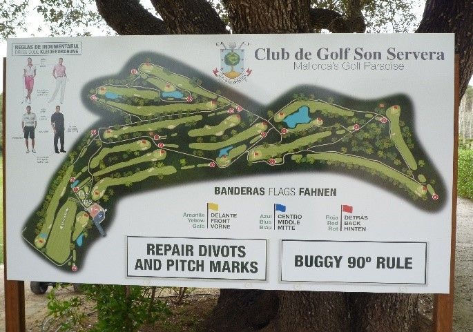 Der Club de Golf Son Servera ist größtenteils ein Parklandkurs mit sanften Hügeln. Er hat ein Par von 72 und misst von den hinteren Abschlägen 5.844 Meter für Herren (Slope 140) und 4.937 Meter für Damen (Slope 133). Auf dem Platz gibt es Eichen, Kiefern, Olivenbäume, Johannisbrotbäume und Palmen, die den Weg zu den Grüns vor zusätzliche Herausforderungen stellen.