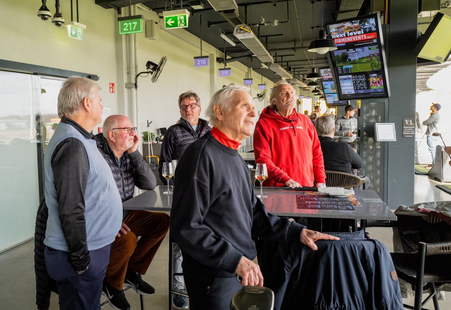 Wenn man nach der typischen Bewegung beim Topgolf fragt: es ist neben dem Golfschwung „Kopf nach oben“, um den Ballflug auf den zahlreichen Bildschirmen zu verfolgen. Die meisten DonnerstagsSenioren aber verzweifelten beim Spiel. Da hatte man mittig auf die Driving Range einen tollen geraden Schlag ausgeführt und der landete auf den Screens mit einem Slice an einem der zahlreichen Gebäude auf dem PB-Course oder im Pazifik. Putten gab es gar nicht, dazu musste man auf der Range, ebenso wie für kürzere Annäherungen, einen Schlag in ein 50 Meter entferntes Netz befördern.