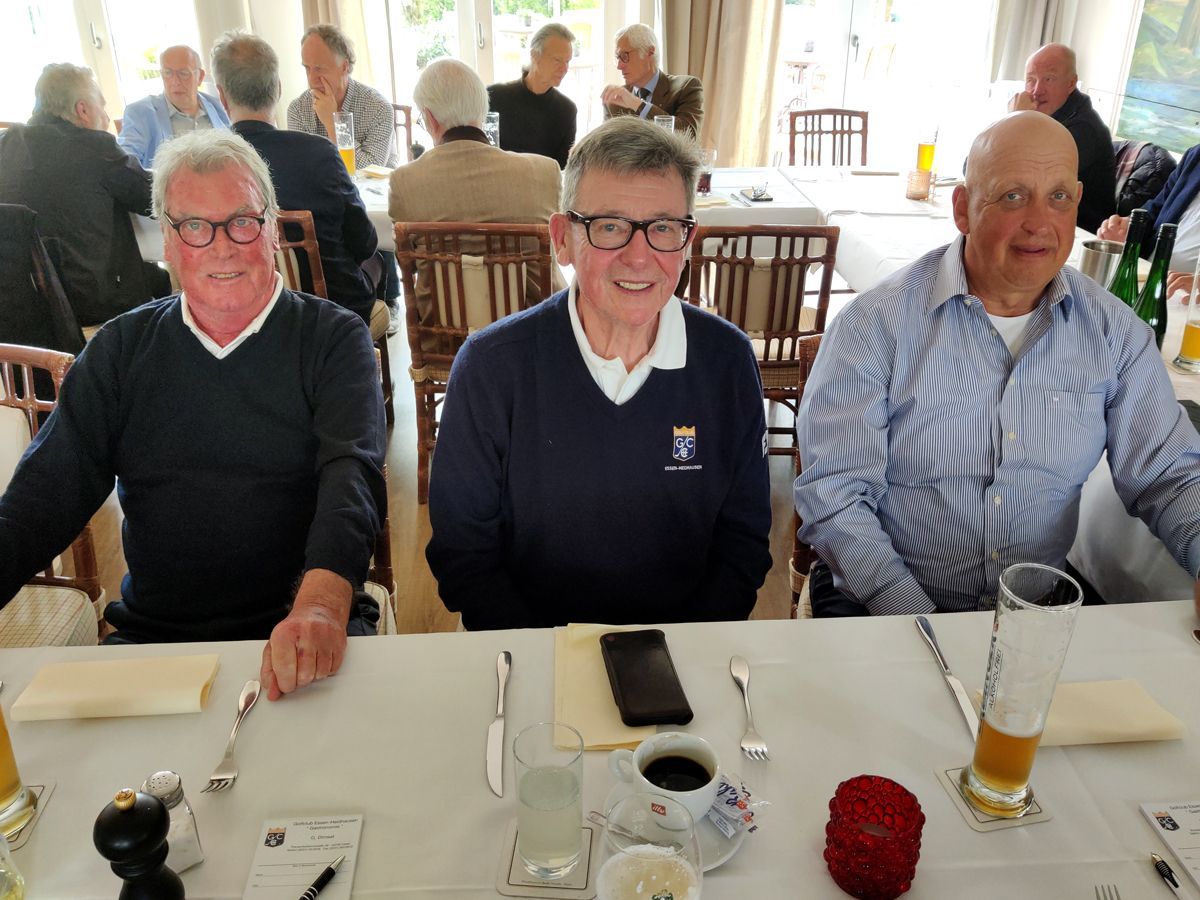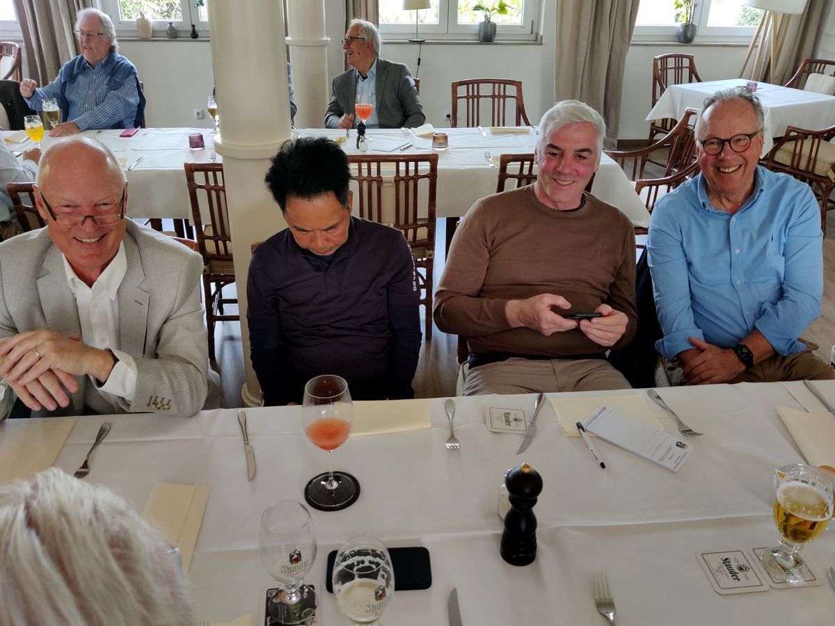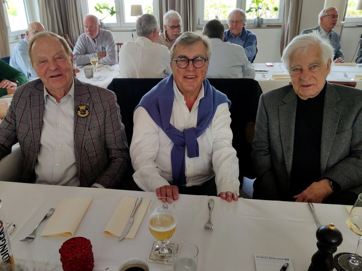 Nach den Flights freute sich unser Sprecher Klemens Bransmöller, dass er 51 Senioren zum gemeinsamen Mittagessen begrüßen konnte, darunter auch schon sehr langjährige Mitglieder, wie Rolf Ebeling, Gerd Enseling, Dieter Koch, Otto Seidenfad, Dieter Heinen und Dr. Jürgen Welter. Schön, dass uns so viele langjährige DonnerstagsSenioren, auch wenn sie nicht mehr regelmäßig spielen können, die Treue halten.
