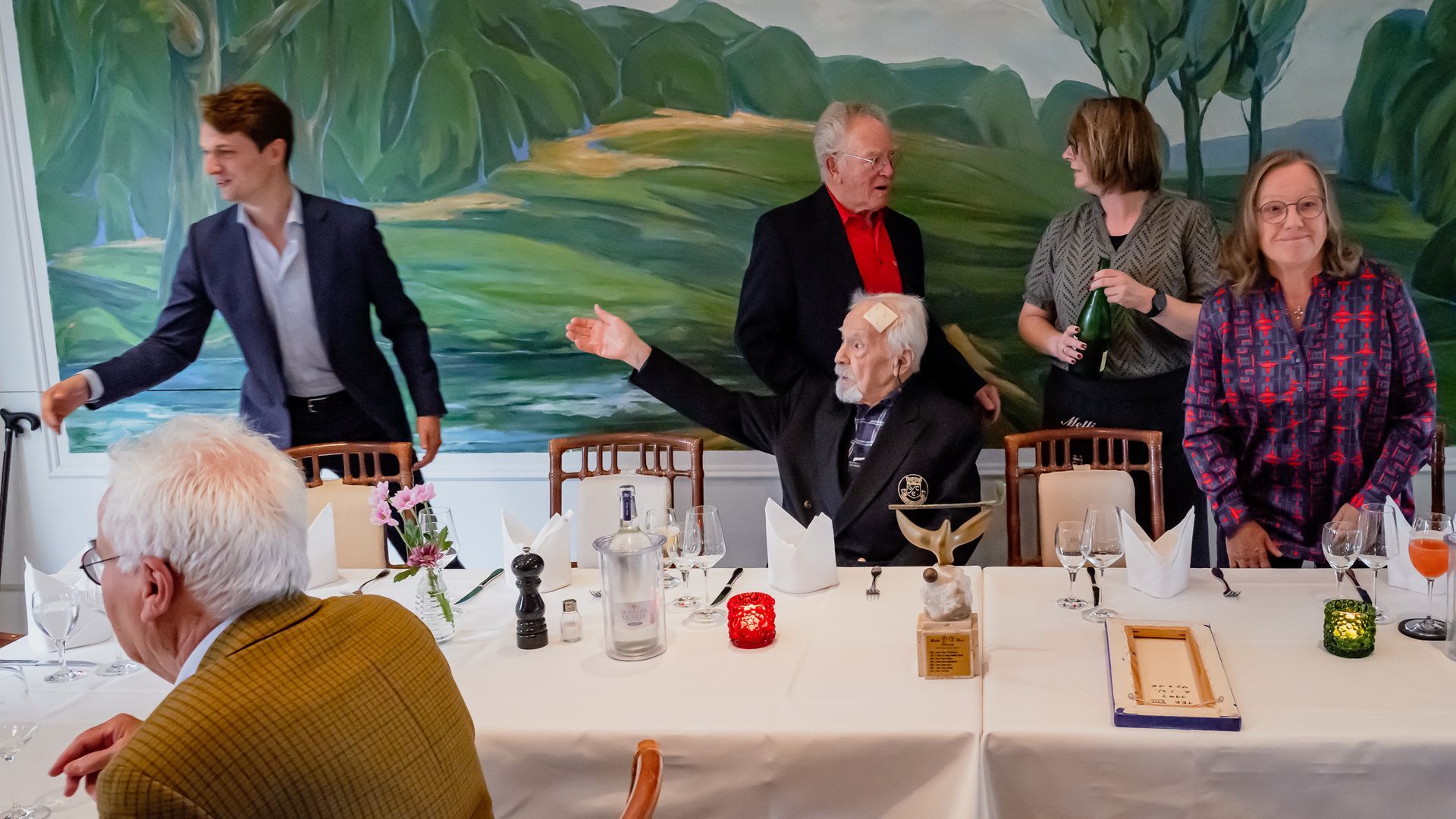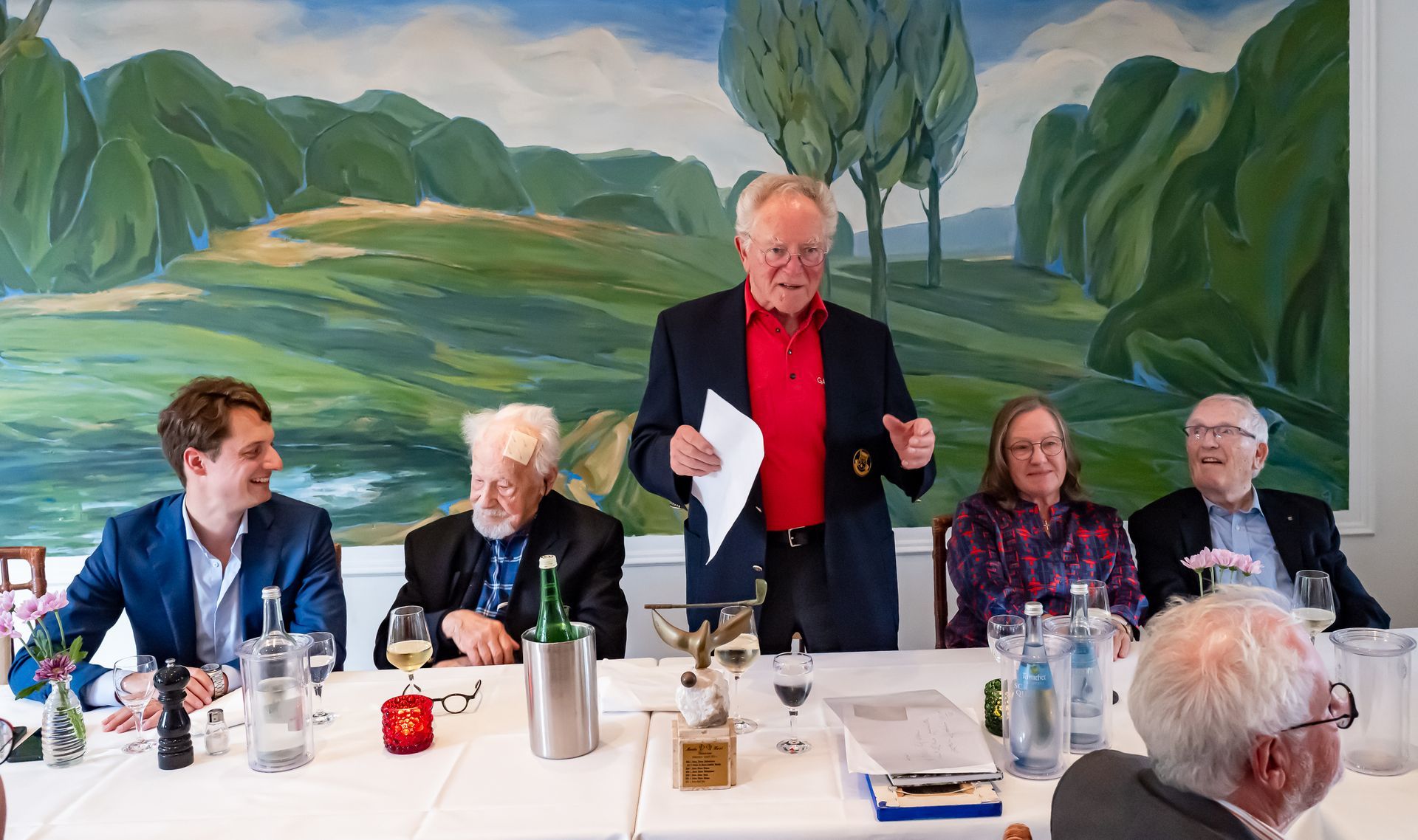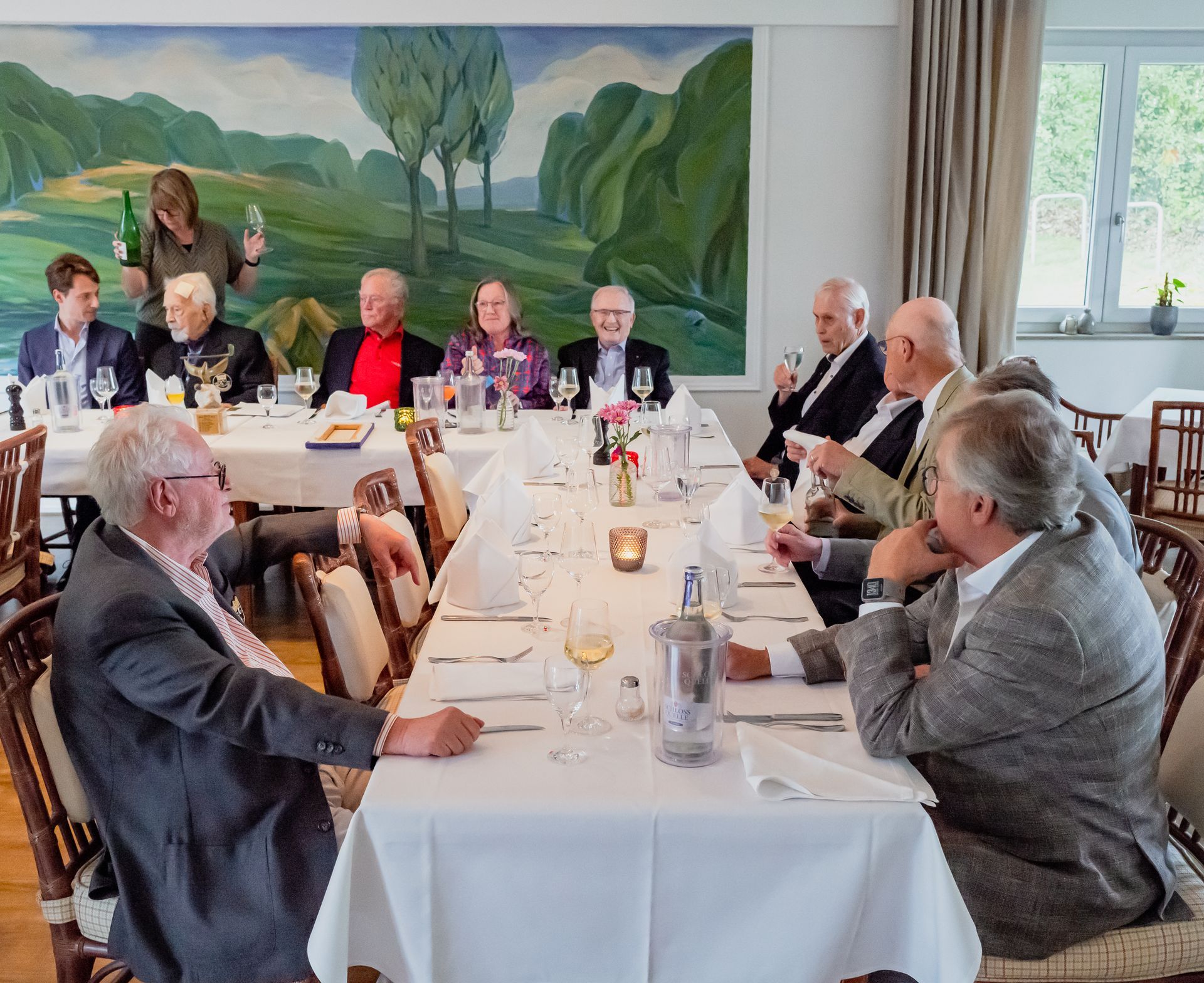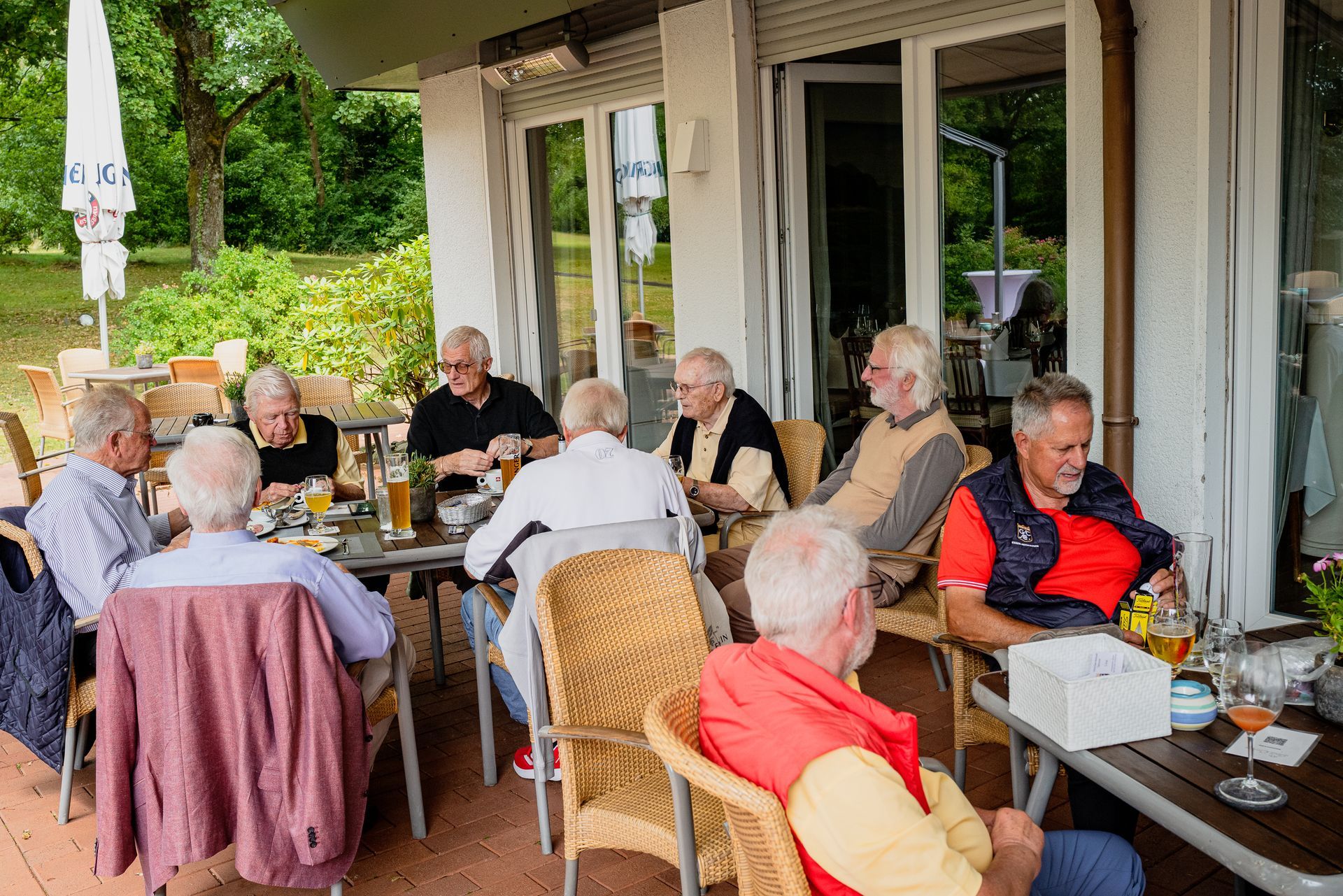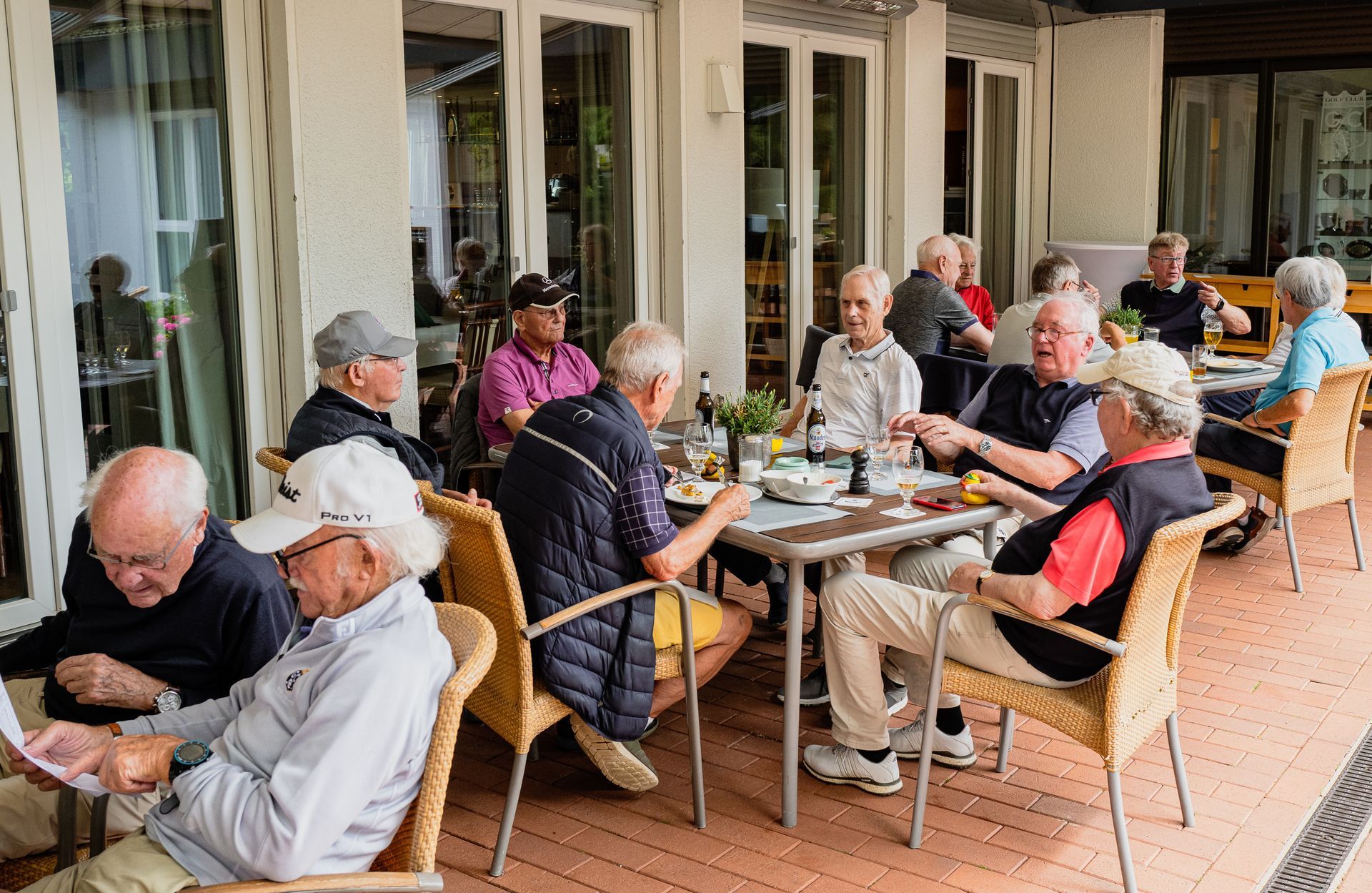 Nach dem bei angenehmen Temperaturen durchgeführten 3. Turnier trafen sich alle frisch gemacht in der Clubgastronomie des GCEH. Horst Giesen begrüßte die Gäste von Oefte und vom ETUF sowie die Heidhauser Golfer vor dem gut gewählten Mahl, um danach als spezielle Gäste Yannik Lubisch (Ratsmitglied der Stadt Essen) – einigen auch als Enkel des verstorbenen DoSen-Mitglieds Hans-Adolf Lubisch bekannt – und den 103jährigen DoSen Jochen „Goethe“ Schmidt mit freundlichen Ausführungen zu begrüßen. Als besonderes Highlight wurde das YouTube-Video (ein Interview des 103jährigen unter dem Titel „102jähriger Kriegsveteran“) in einem kurzen Ausschnitt vorgestellt. Die interessanten Ausführungen des Interviewten über Krieg und das Leben sollte man sich einmal anhören!