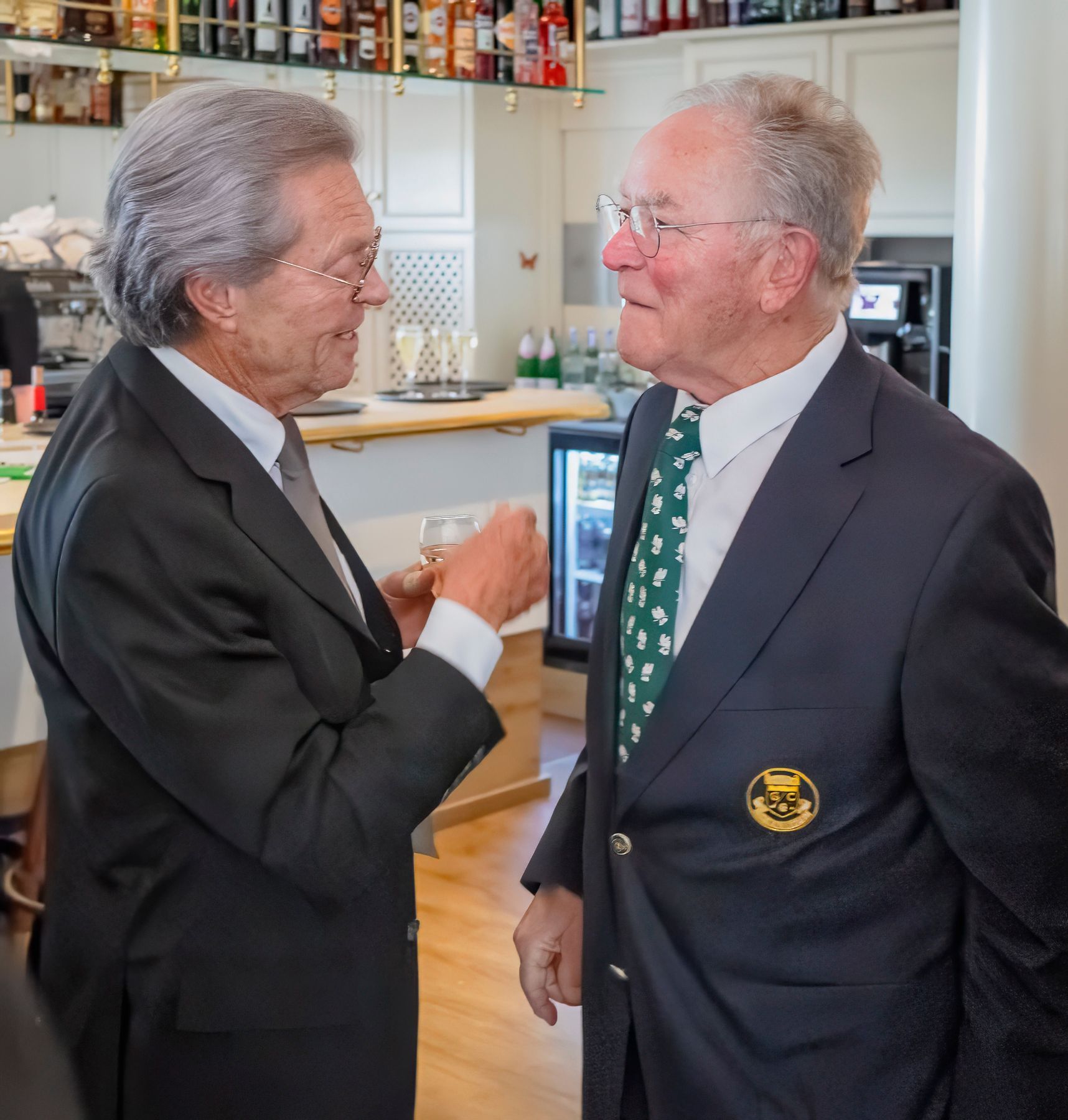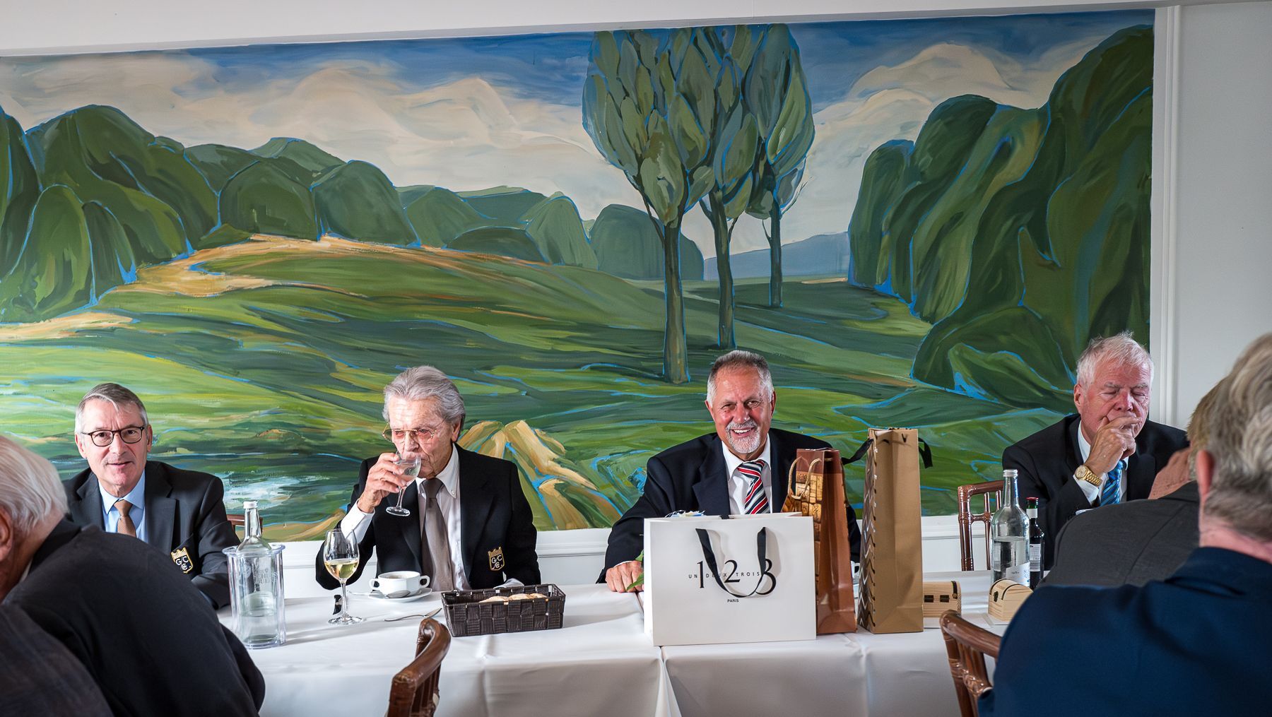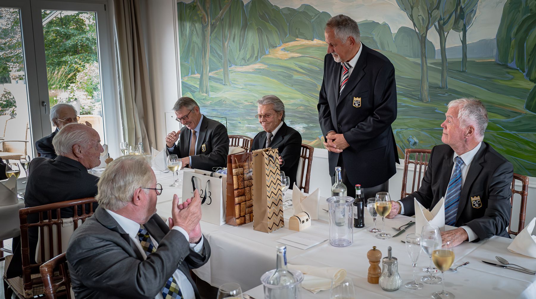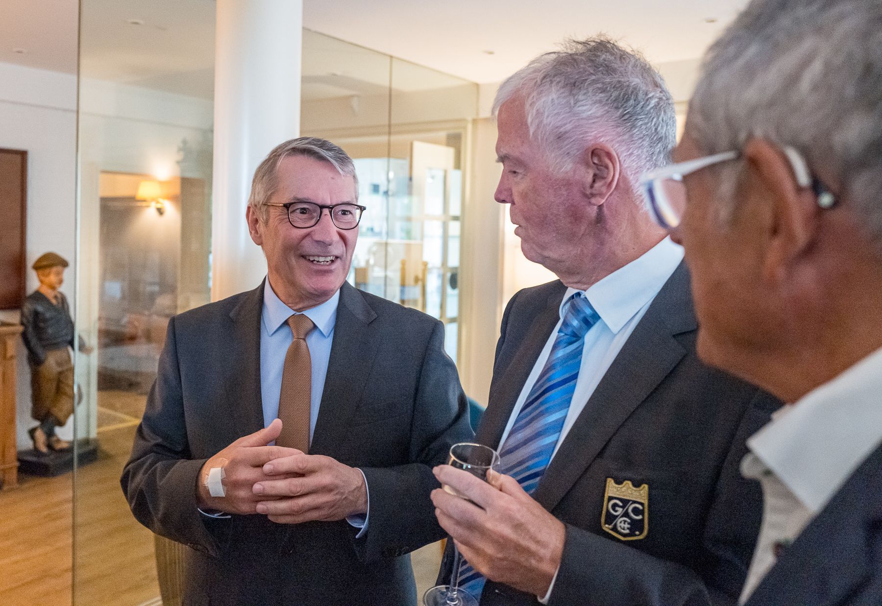 Eike Benke gab freimütig zu, dass seine in langen Jahren erworbenen Weinkenntnisse erheblich besser sind als seine Golffortschritte. Manfred Tiegelkamp, dessen nachhaltige Leistungen als Präsident von 2006 bis 2015 und in anderen Ämtern für den Club von Klemens Bransmöller intensiv gewürdigt wurden, brachte Anekdoten zum Besten. „Als sich der erfolgreiche Umbau des Platzes mit neuen Bunkern und Teichen in der deutschen Golfszene herumgesprochen hatte, bekam ich die Anfrage eines Golfmagazins zu einem Interview. Der Redakteur war sehr gut vorbereitet. Allerdings wollte er mehr zu meiner Rolle beim Fußballskandal im Umfeld von Schalke in den 70er Jahren wissen. Zur Verteidigung der Schalker war ich jedoch als ganz junger Anwalt wie die Jungfrau zum Kinde gekommen."