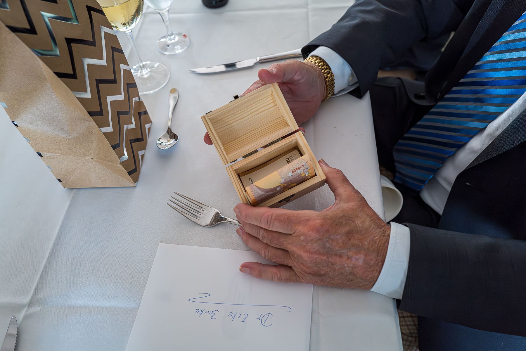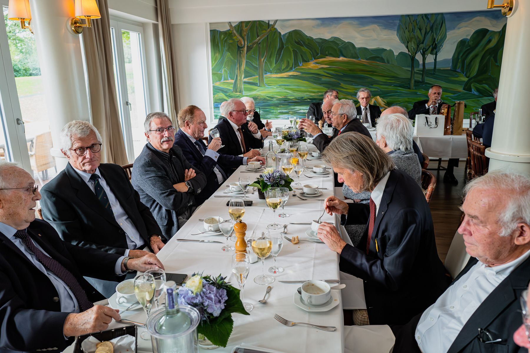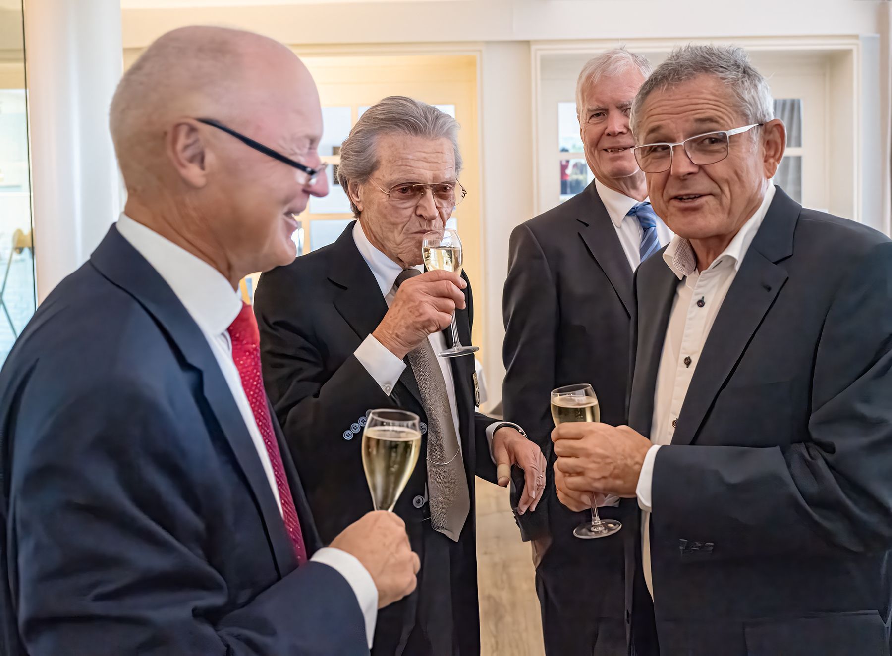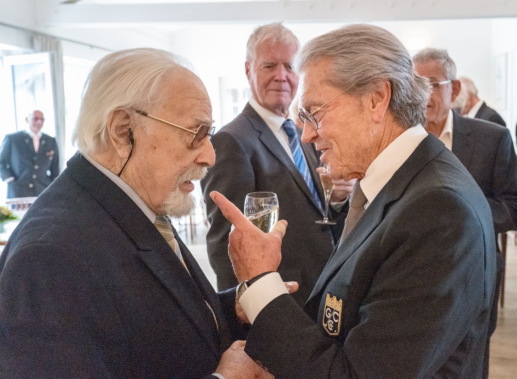 Eike Benke gab freimütig zu, dass seine in langen Jahren erworbenen Weinkenntnisse erheblich besser sind als seine Golffortschritte. Manfred Tiegelkamp, dessen nachhaltige Leistungen als Präsident von 2006 bis 2015 und in anderen Ämtern für den Club von Klemens Bransmöller intensiv gewürdigt wurden, brachte Anekdoten zum Besten. „Als sich der erfolgreiche Umbau des Platzes mit neuen Bunkern und Teichen in der deutschen Golfszene herumgesprochen hatte, bekam ich die Anfrage eines Golfmagazins zu einem Interview. Der Redakteur war sehr gut vorbereitet. Allerdings wollte er mehr zu meiner Rolle beim Fußballskandal im Umfeld von Schalke in den 70er Jahren wissen. Zur Verteidigung der Schalker war ich jedoch als ganz junger Anwalt wie die Jungfrau zum Kinde gekommen."